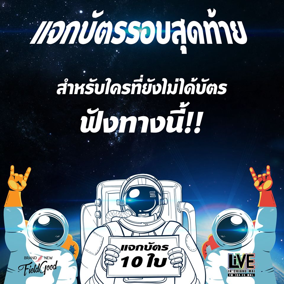 ก่อนหน้านี้ใีครพลาดการแจกบัตรไป รีบด่วน!! รอบสุดท้ายที่ ไลฟ์เอฟเอ็ม 104.25 เชียงใหม่ แจกบัตรคอนเสิร์ตมันเหนือมาก ตอนตะลุยนาซ่าส์ ว...