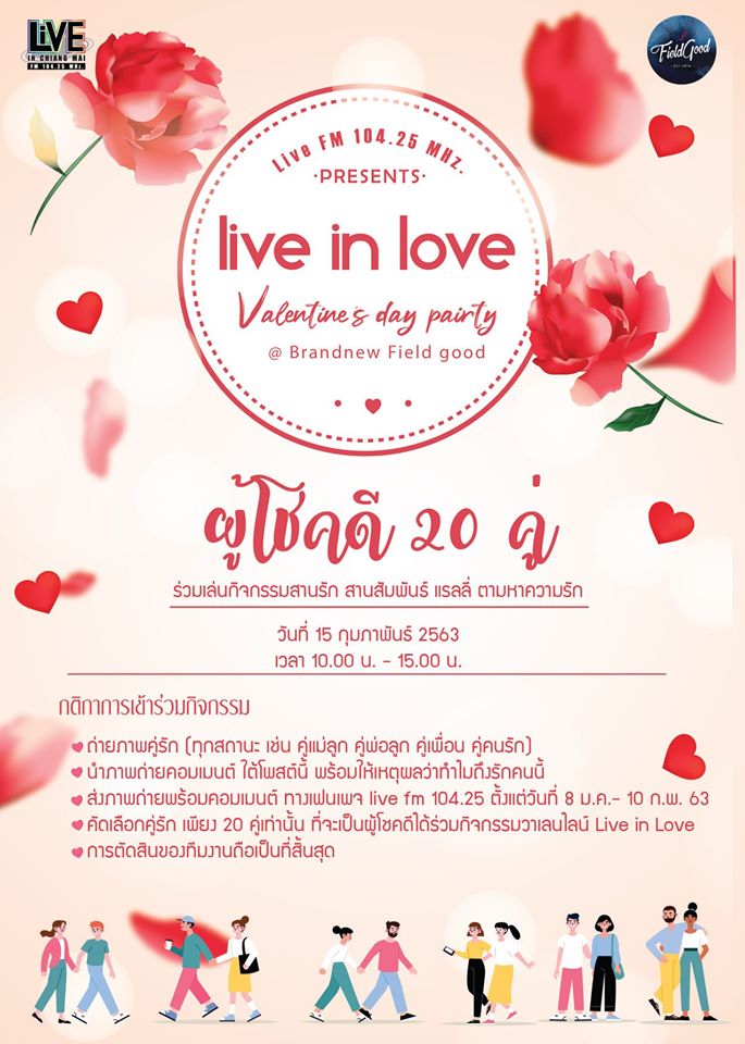 วาเลนไทน์ปีนี้ คุณจะไม่เหงาอีกต่อไป Live FM 104.25 ชวนคุณมาร่วมสนุกกับกิจกรรม Live In Love สุดฟิน เพียงถ่ายภาพคู่กับคนที่คุณรัก ได...