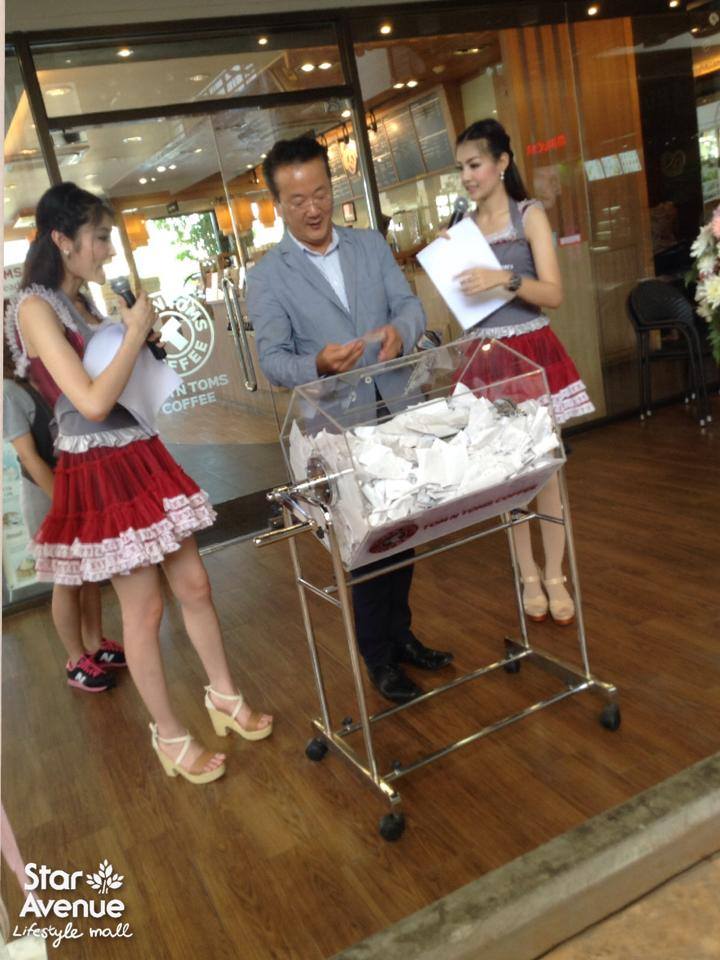 กิจกรรมจากร้าน TOM N TOMS COFFEE , Thailand"จวนจิแสนจับแจกจริง"โดยมีผู้บริหารจากร้าน Tom N Toms Coffee และผู้บริหารจาก Star Avenue Lifestyle Mall ให้เกียรติมาเป็นผู้จับรางวัลผู้โชคดีบินฟรีไปเกาหลี ที่สาขา สตาร์ เอวินิว ไลฟ์สไตล์ มอลล์ (หน้าสถานีขนส่งอาเขต เชียงใหม่)