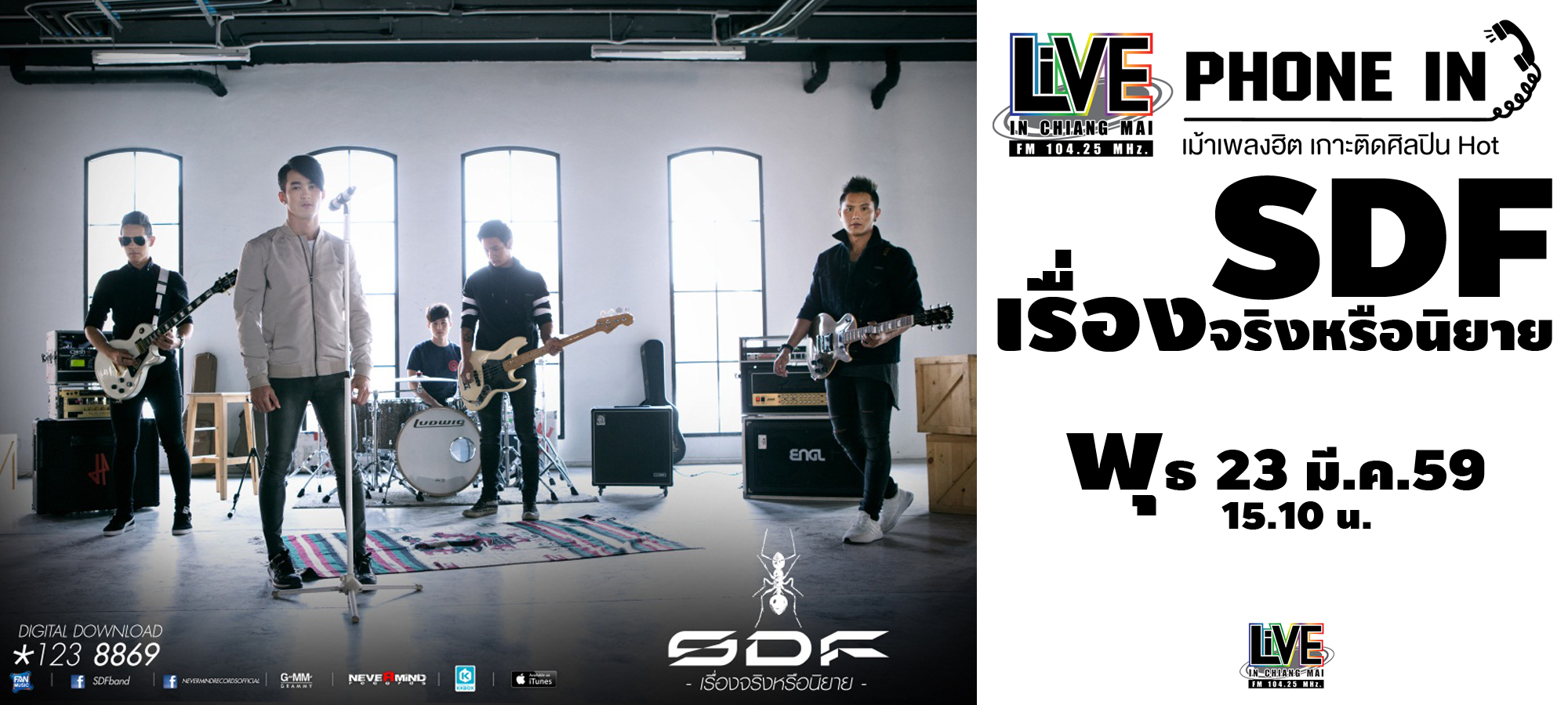Live Phone In เม้าเพลงฮิต เกาะติดศิลปินฮอต เปิดไมค์ต้อนรับ S.D.F. ศิลปินสายเลือดร็อก แและมีเพลงฮิตมากมาย วันนี้กลับมาอีกครั้งภายใต...