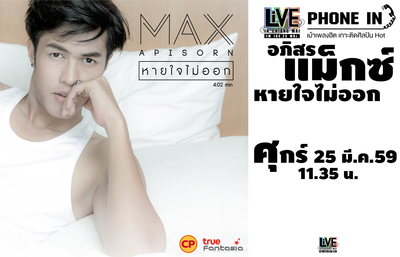 Live Phone In เม้าเพลงฮิต เกาะติดศิลปินฮอต เปิดไมค์ต้อนรับศิลปิน "แม็กซ์ อภิสร" The Winner จาก True Academy Fantasia Season 12 หนุ...