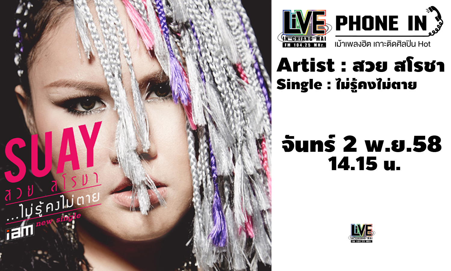 Live Phone In เม้าเพลงฮิต เกาะติดศิลปินฮอต บ่ายวันนี้ต้อนรับ "สวย สโรชา" จาก iam สาวสวย ยิ้มง่ายเฟรนลี่ แฝงความเป็น Feminine ที่สา...