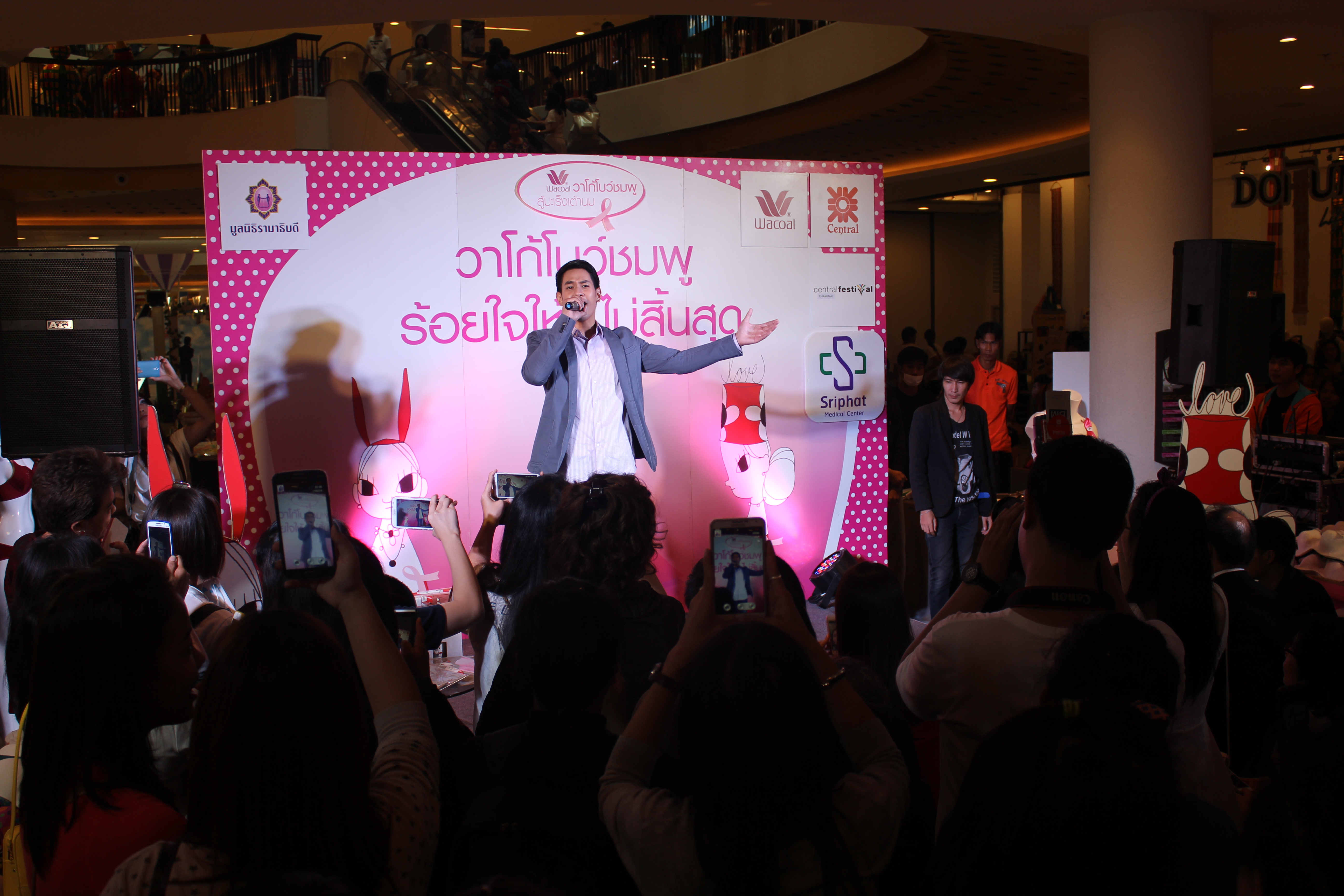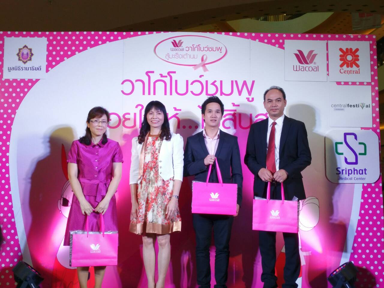 เมื่อวันเสาร์ ที่ 10 ต.ค.ที่ผ่านมา ผลิตภัณฑ์ชุดชั้นใน "วาโก้" ร่วมกับเซ็นทรัลเฟสติวัล เชียงใหม่ จัดงาน "วาโก้โบว์ชมพู ร้อยใจให้… ไม่สิ้นสุด" Beauty Inside เพื่อรณรงค์ให้ผู้หญิงไทยตระหนักถึงภัยมะเร็งเต้านม พร้อมเชิญร่วมกิจกรรมทำบุญซื้อของที่ระลึก หารายได้สมทบทุนมูลนิธิรามาธิบดี เพื่อช่วยเหลือผู้ป่วยมะเร็งเต้านมยากไร้ พร้อมช้อปสินค้าผลิตภัณฑ์ชุดชั้นในวาโก้ ลดสูงสุดถึง 70 % และร่วมตรวจสุขภาพเบื้องต้นโดยทีมคณะแพทย์ จากศูนย์ศรีพัฒน์ คณะแพทยศาสตร์ มช. โดยได้รับเกียรติจาก ผศ.พญ.ไพลิน คงมีผล แพทย์จากโรงพยาบาลมหาราชนครเชียงใหม่ มาร่วมพูดคุยกับเรื่องการดูแลสุขภาพให้ห่างไกลจากภัยมะเร็งเต้านม พร้อมทั้งศิลปินหนุ่ม "อ๋อม อรรคพันธ์" ที่มาสร้างความสนุกสนานให้ผู้เข้าร่วมงานและแฟนคลับ อีกทั้งได้มีการจำหน่าย wacoal Pink Ribbon Souvenir ภายในงานเพื่อนำเงินสมทบทุนช่วยเหลือผู้ป่วยมะเร็งเต้านมที่ยากไร้ ภายในงานคุณธมลวรรณ สารกาศ ผู้จัดการแผนกชุดชั้นในวาโก้ บริษัท ไอ.ซี.ซี อินเตอร์เนชั่นแนล จำกัด (มหาชน) ได้มอบชุดชั้นใน จำนวน 100 ชุด มูลค่ากว่า 155,000 บาท เพื่อมอบให้กับผู้ป่วยมะเร็งเต้านม อีกด้วย