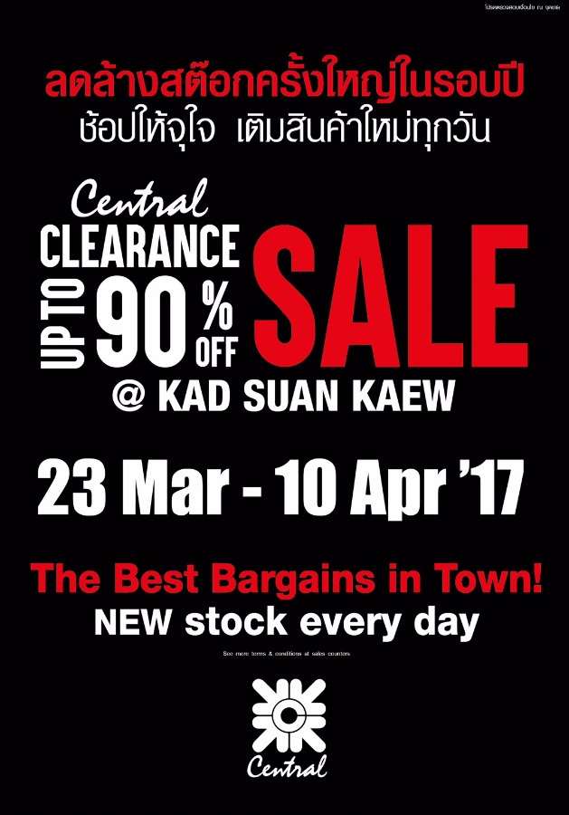 กลับมาอีกครั้งกับงานลดล้างสต๊อกครั้งแรกของปีที่เชียงใหม่ Clearance Sale ลดสูงสุด 90% ที่เซ็นทรัลกาดสวนแก้ว ยกขบวนสินค้าคุณภาพหลากหลายราคาเริ่มต้นไม่ถึงร้อยบาท เตรียมตัวช้อปจุใจกับแบรนด์ดังมากมายที่ขนกันมาลดจัดเต็ม ทั้งเสื้อผ้า, เครื่องสำอาง, รองเท้า และอื่นๆ อีกมากมาย 23 มี.ค. - 10 เม.ย.60 ที่เซ็นทรัลกาดสวนแก้ว เท่านั้น!!