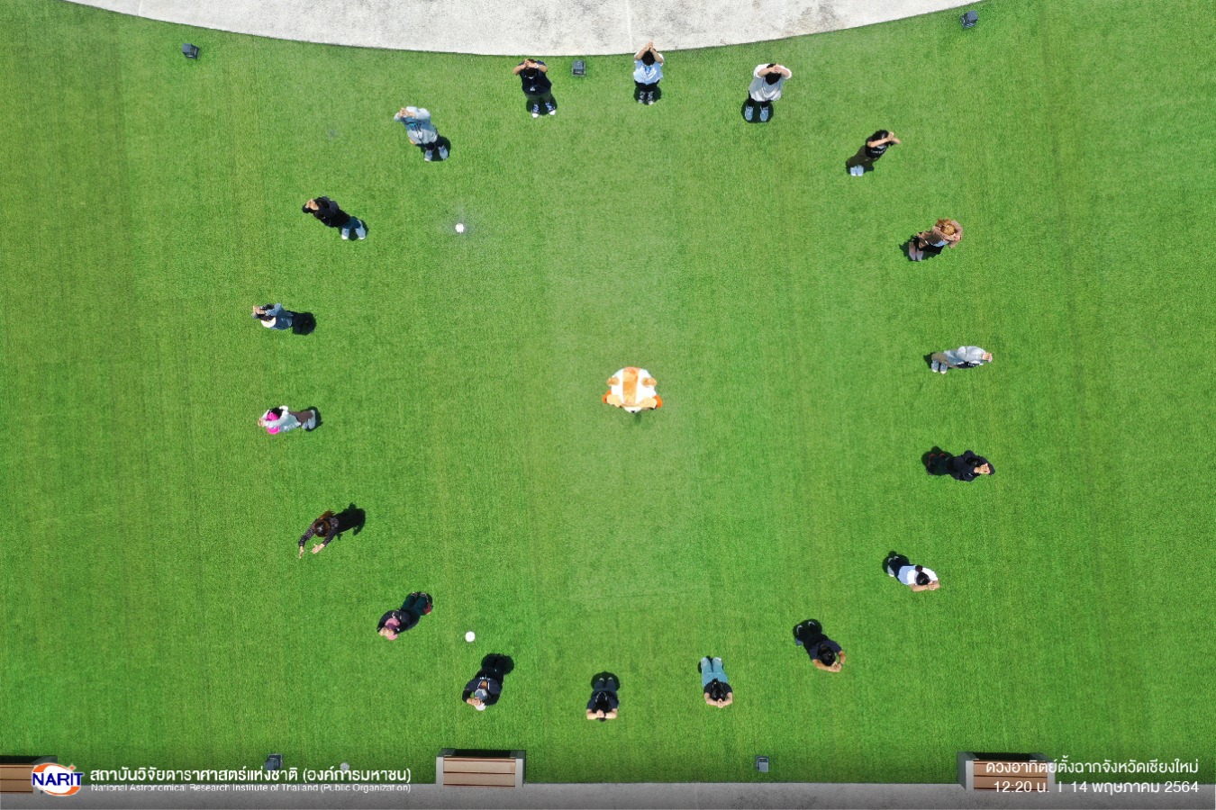 สถาบันวิจัยดาราศาสตร์แห่งชาติ (องค์การมหาชน) (สดร.) เผยภาพเงาขณะเกิดปรากฏการณ์ดวงอาทิตย์ตั้งฉาก เมื่อวันที่ 14 พ.ค.64 เวลา 12.20 น. ณ จังหวัดเชียงใหม่ เวลาดังกล่าวดวงอาทิตย์ได้เคลื่อนผ่านจุดกลางศีรษะ เงาตกอยู่ใต้เท้าพอดี รวมถึงเงาของวัตถุต่างๆ อยู่ในระนาบเดียวกับรูปร่างของวัตถุเสมือนไร้เงา